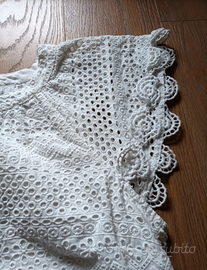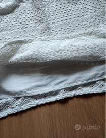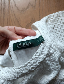 Camicetta bianca in pizzo con maniche corte Ralph Lauren. Blusa elegante bianca Ralph Lauren in 100% cotone, non trasparente (solo le spalle non hanno tessuto sotto)