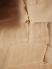 Elegante ma anche sbarazzina, ampia e trasparente. Ha la chiusura sul collo con un delizioso bottoncino in oro. Morbida e plinsettata