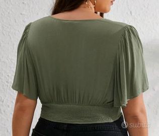Camicetta Con Scollo Profondo Manica A Farfalla Con Bottone Centrale nuova mai indossata. Tessuto intrecciato non-elastico (SHEIN pronta consegna). Taglia Disponile 1XL e 2XL.