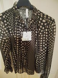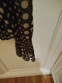 camicia donna in verde con pois beige un filo di lurex collo co rouge e giochetti a casa china senza bottoni ... foderata sul davanti...nuova con cartellino taglia L comoda