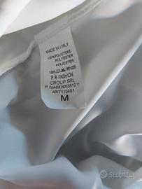 Bellissima blusa della marca PAOLA RIVA, in colore bianco con un elegante colletto nero decorato con perline e strass.