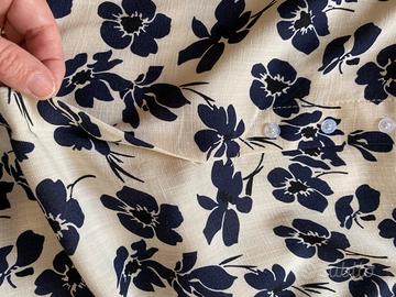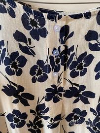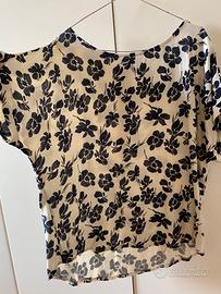 Camicetta estiva bianca e blu, fresca e leggera. Modello più lungo dietro, va bene anche con i pantaloni. Usata poco, ottime condizioni. Taglia comoda