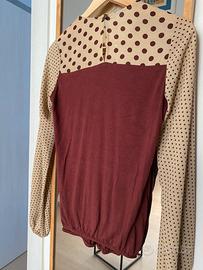 Camicetta Fornarina. Usata ma in buone condizioni. Maniche a sbuffo, simil velo. A pois beige e marroncino.
