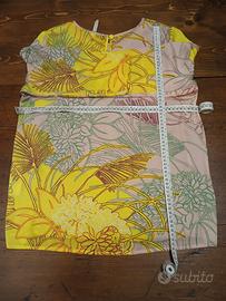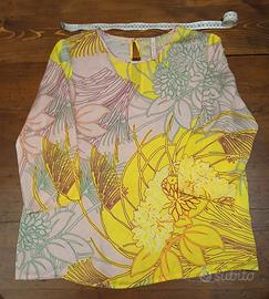 Graziosa camicetta primaverile fantasia floreale sfondo giallo e rosa in seta sintetica