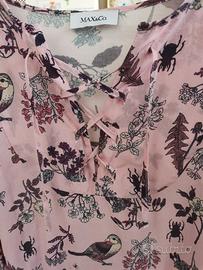 Vendo camicetta Max & Co. Indossata due volte. Ideale per mezze stagioni ma perfetta sottogiacca. Sfondo rosa con fantasie bordeaux. Allacciatura originale con laccetti. Molto morbida e non si stropiccia. Seta misto viscosa.