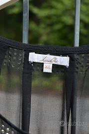 Camicetta nera con payette d'orate. Tessuto leggero.
