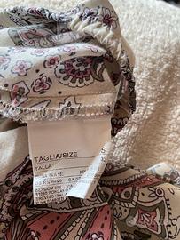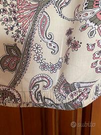 Camicetta Stile Benetton Vendo camicetta Stile Benetton in tessuto fantasia 100% cotone Leggera arricciatura allo scollo, in fondo e alle maniche Scollo a barca Tg: S Ben tenuta