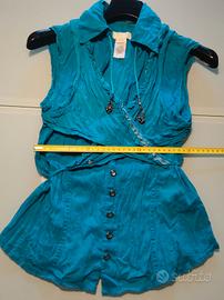 Bellissima camicetta top del marchio Diesel, taglia S/40. Il colore è un bellissimo turchese. - Modello corto con maniche corte. - Chiusura con bottoni. - Dettagli con volant. - Perfetta per la primavera/estate.
