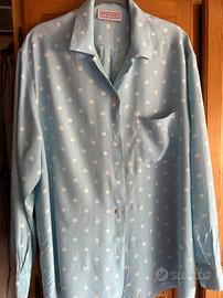 Camicetta vintage (primi amni '90) Stefanel turchese a pois bianchi. Maniche lunghe, taschino sul davanti, colletto e allacciatura frontale, 100%viscosa, made in Italy.