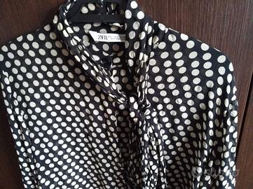 CAMICETTA del noto e prestigioso marchio ZARA per DONNA taglia L colore nero e beige a poissons grande qualità ed eleganza, in VISCOSA al 100% Foulard removibile.