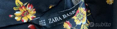 La Blusa leggera e chic senza maniche è ideale per un look elegante nelle giornate estive. E' in poliester 100%, ha un taglio senza tempo che unisce comfort ed eleganza, sta sempre bene in qualsiasi occasione. Marca Zara, taglia M su sfondo nero risaltano motivi floreali raccolti davanti e dietro in un rombo dai contorni rossi.E'facile da curare e resistente alle pieghe.