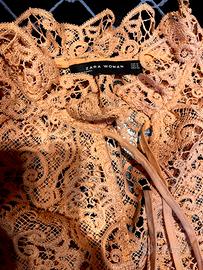 Camicetta Zara pizzo macramé nude M