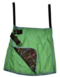 Gonna: a portafoglio con allacciatura anteriore con velcro e cintura con chiusura a scatto, dotata di due tasche sulla parte anteriore e di cinturini per essere appesa.
