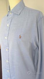 Camicia Polo Ralph Lauren oriainale, modella Slim Fit in classico cotone Oxford azzurro. Modello slim fit. Colore azzurro/ blu. Logo Pony ricamato sul petto. In perfette condizioni.