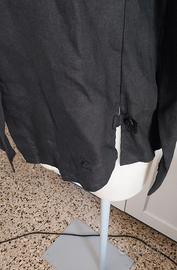 Spacchi laterali con dettaglio in fettuccia e bottone.