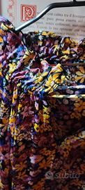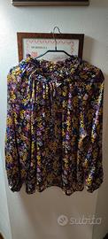 Camicia in poliestere molto piacevole e setosa con colletto a volant chiuso da due laccetti che si possono legare insieme o anche separatamente. Taglia XL, ma va bene anche per XXL. Misura seno 60, maniche belle lunghe e larghe. Molto bella