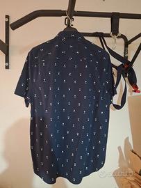 camicia hollister a maniche corte di colore blu Marino e grafiche di colore bianco taglia s mai indossata