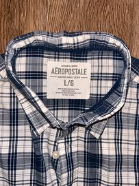 Camicia a maniche lunghe firmata Aeropostale, in fantasia a quadri blu e bianco, con doppia tasca frontale con pattina.