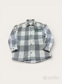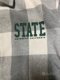 Camicia a quadri grigia e bianca Bershka con scritta "State Division Carolina" sul retro. Taglia XS, in ottime condizioni.