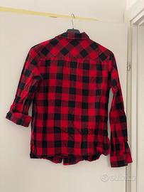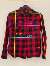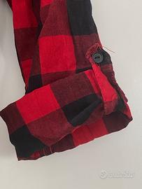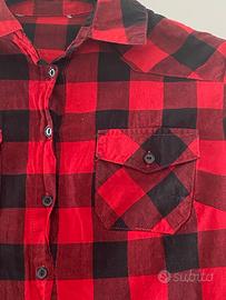 Camicia a quadri nera e rossa. La manica può essere arrotolata e fissata con un bottoncino. Per le misure vedere la seconda foto. Dovrebbe essere una S o una XS, veste aderente. Ottime condizioni, indossata poche volte. Ritiro a mano a carico dell’acquirente oppure spedizione tramite TuttoSubito. È possibile visionare la camicia su appuntamento, contattatemi tramite chat.