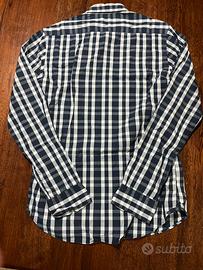 Camicia a maniche lunghe da uomo, modello a quadri blu e bianco.