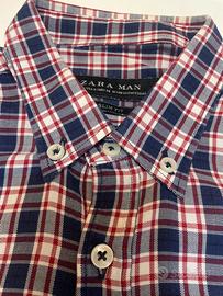 - Fantasia a quadri con dettagli rossi e bianchi.