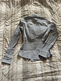 • Ha il colletto e uno scollo a V. Si chiude con i bottoni, anche sui polsi