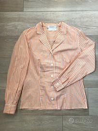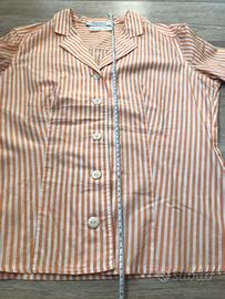 In ottime condizioni, come nuova! Colore : bianco/pesca In puro cotone Taglia: IT46 / US12 Misure nelle foto Spalla: 45cm Petto : 53cm Lunghezza: 66cm Manica: 60cm