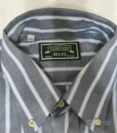Camicia a righe vintage Made in Italy 🇮🇹 Nessun difetto evidente da segnalare, eccetto una piccola scultura a lato della manica (vedi foto). Taglia XXL Composizione 100% cotone Altezza: 79 cm Ascelle: 62 cm Spalle: 52 cm