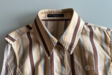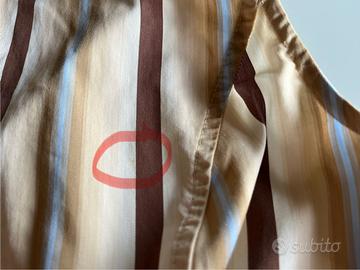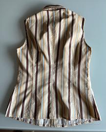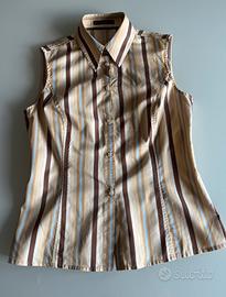 Camicia smanicata a righe, 100% cotone, taglia 42. Usata, in buone condizioni, un’impercettibile macchiolina come evidenziato nell’ultima foto.