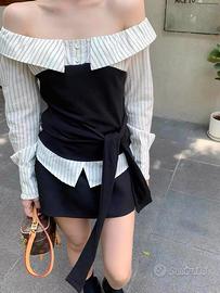 camicia a spalle scoperte a righe, NUOVO, taglia M