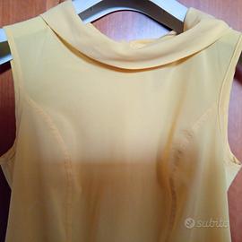 Splendida camicia giallo canarino in tessuto leggermente elasticizzato. Molto leggera , con collo a ciambella davanti e a punte dietro. In ottimo stato, senza alcun difetto, con bottone di riserva.
