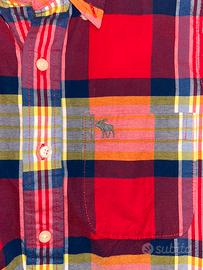 Camicia a maniche lunghe firmata Abercrombie & Fitch, in fantasia a quadri rossi, blu, gialli e arancioni.