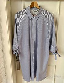 Abito camicia Naf Naf in fresco cotone a righe bianche e azzurre.