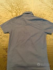 Camicia Alcott a maniche corte, taglia M, colore blu con sottili righe verticali. Perfetta per un look casual ed elegante.