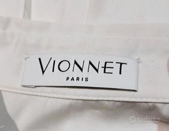 Il capo è valorizzato da una balza asimmetrica applicata su una spalla, che crea movimento e dona un tocco couture, tipico dello stile Vionnet. Linea femminile ma confortevole, con retro essenziale che bilancia il dettaglio decorativo frontale/laterale.