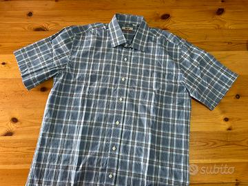 Camicia azzurra a quadri con manica corta. Taschino sul davanti. Brand Sky, taglia L 41/42. Composta da 50% cotone e 50% poliestere. #camiciauomo #camiciaaquadri #camiciamanichecorte #camiciauomoaquadri #camiciauomomanicacorta #camiciasky #camiciacotone #camiciaazzurra #camiciazzurrauomo