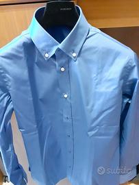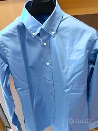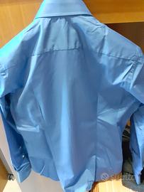 Camicia Azzurra su MISURA mai indossata praticamente nuova. Taglia Media collo 39. Le misure sono SPALLA-SPALLA 44 cm, LUNGHEZZA MANICHE 62 cm, LUNGHEZZA CAMICIA 72 cm, VITA 45 cm