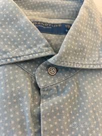 Vendo camicia barba Dandylife, non presenta difetti ne macchie. Buone condizioni. Colore azzurro con piccoli cuoricini disegnati bianchi. Tg. 42 Collo 16 1/2