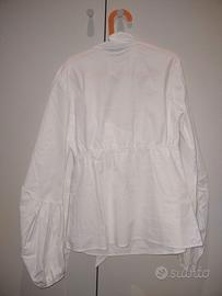 Camicia Benetton bianca donna taglia S. Modello elegante, scollata, sciarpina applicata. Bottoncini sottoseni, maniche a sbuffo sui polsi, ottime condizioni