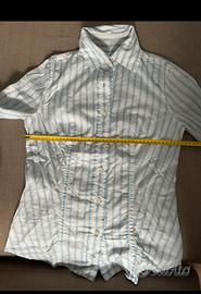 Camicia BENETTON bianca a righe azzurre misure in foto. L'etichetta è stata tagliata Donna.