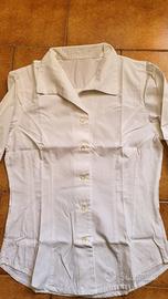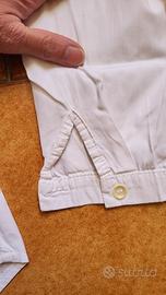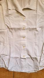 camicia bianca da donna, in cotone, dovrebbe essere tg S/M. non ha più etichetta. i bottoni non arrivano fino al collo. usata, in buono stato. larghezza spalle 40cm, lunghezza 61cm.