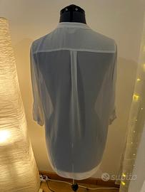 Camicia bianca con manica trasparente, taglia unica, vestibilità larga