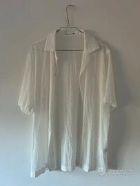 Camicia regular fit realizzata in tessuto di cotone elasticizzato. Colletto bowling e maniche corte. Chiusura frontale con abbottonatura.