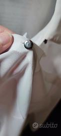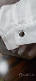 Usata poco perché per me troppo lunga. Bottoni in argento brunito. Bottoncino di ricambio. Fantastica con un top nero in pizzo, lasciata aperta con un cinturone nero. O come copricostume. Poliestere