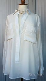Camicia bianca Silvian Heach 🤍 Camicia/blusa bianca fluida, molto elegante e versatile. Tessuto leggero tipo viscosa, leggermente trasparente. 🔹 Taglia: XS ma veste molto morbida → ideale per S/M 🔹 Modello da infilare 🔹 Tasche frontali 🔹 Vestibilità comoda e lineare Condizioni ottime. Perfetta sia per look casual con jeans sia più eleganti ✨ 📏 Se ti servono misure scrivimi!