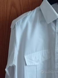 Camicia bianca da uomo della Marina militare per uniforme a maniche lunghe e con spalline e tasche sul petto. Misure del collo 42( 16 e mezzo). Larghezza spalle 50 cm. Larghezza petto 58 cm. Lunghezza camicia 72 cm.