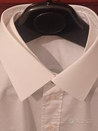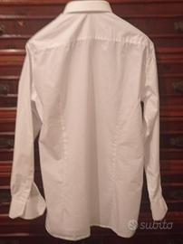 Camicia bianca da uomo, originale della Marina Militare con maniche lunghe e colletto rigido in plastica per divise invernali. Larghezza spalla 44 cm. Larghezza torace 54 cm. Lunghezza 78 cm. Una L/XL.