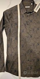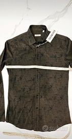 Camicia da uomo Bikkembergs con una stampa all-over unica. - Colore verde oliva. - Maniche lunghe. - Collo classico. - Taglia XS,misure precise in foto. - 97% cotone, 3% elastan - Nuova con cartellino