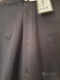 Camicia blu scuro Ferrari by Emporio Armani, parte del travel kit del team F1 come da cartellino attaccato, nuova e conservata nel suo sacchetto originale con la carta al collo, mai aperta se non per fare le foto. Presenta entrambi loghi Ferrari e Emporio Armani, 100% cotone molto morbido, scivola bene. Solo spedizione